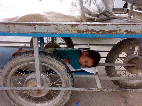 کودک در حال سر از زیر خاک در آوردن در غزه!