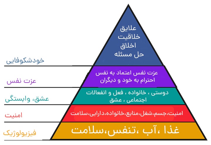 برای بحث مفصل و جالب در باره هرم مازلو روی هرم زیر کلیک کنید (سایت www.farsi1.eu):